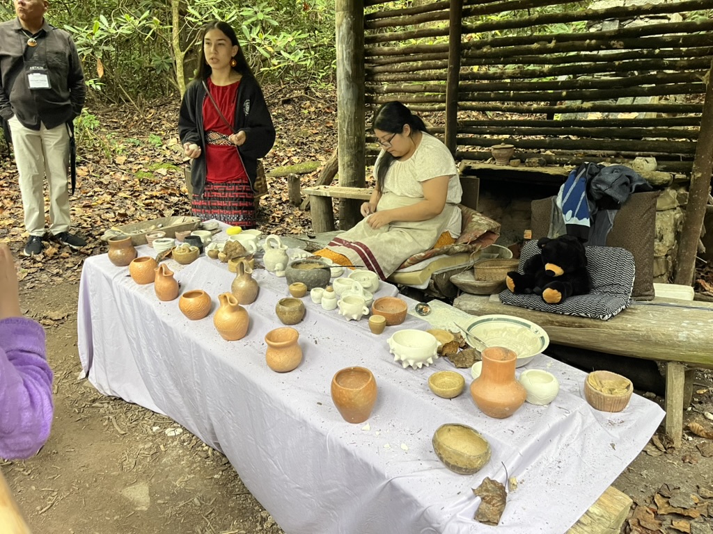 One of the most memorable moments of the week was visiting the Oconaluftee Indian Village, an immersive 1760s-era Cherokee community site. The visit provided meaningful context for the conference, allowing attendees to witness traditional craftsmanship, hear from cultural interpreters, and gain insight into Cherokee language revitalization, governance, and daily life. Experiencing the village firsthand underscored the enduring strength of Cherokee cultural practices and framed the rest of the conference with a deeper appreciation for the ways history, land, and community remain interconnected.