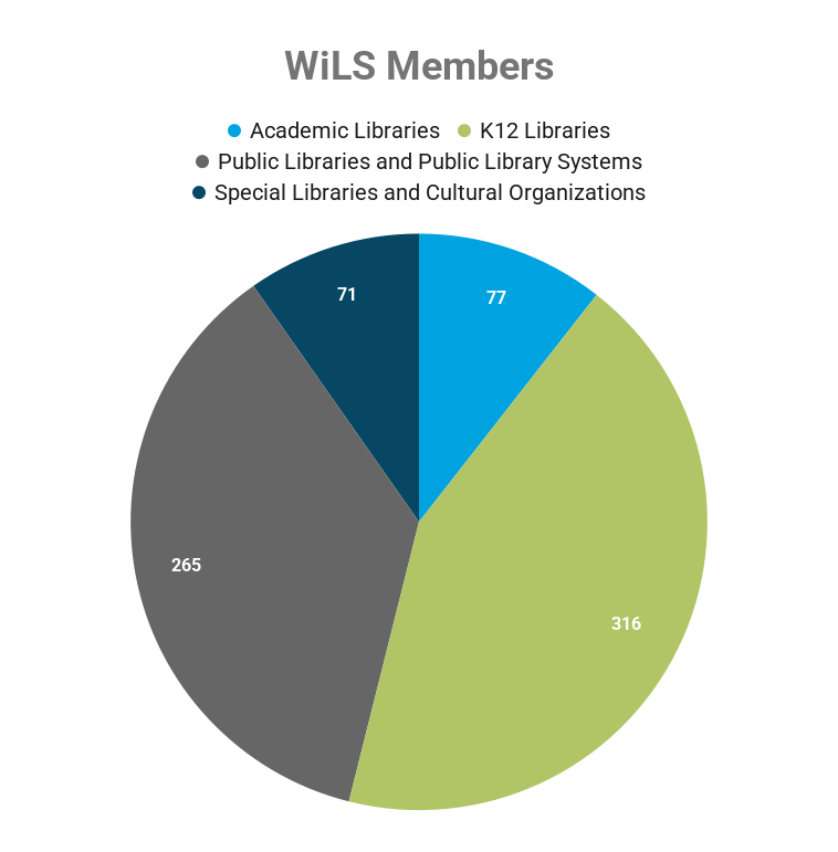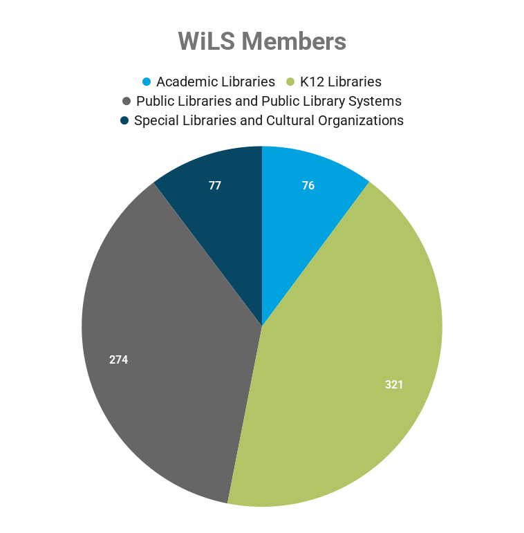 WiLS is proud to serve nearly 750 libraries and organizations in Wisconsin and beyond. Thank you to our members for participating in WiLS and helping your colleagues by supporting collaboration!
